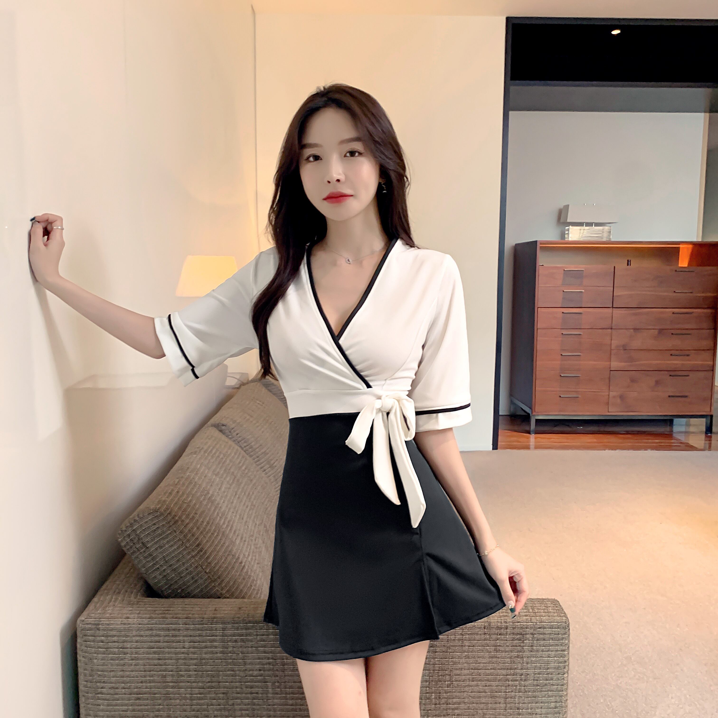 ナイトクラブの女性の作業服、技術者、セクシーな作業服、ローカット、深いVネック、ウエスト、薄い、半袖のドレス micat17525133181