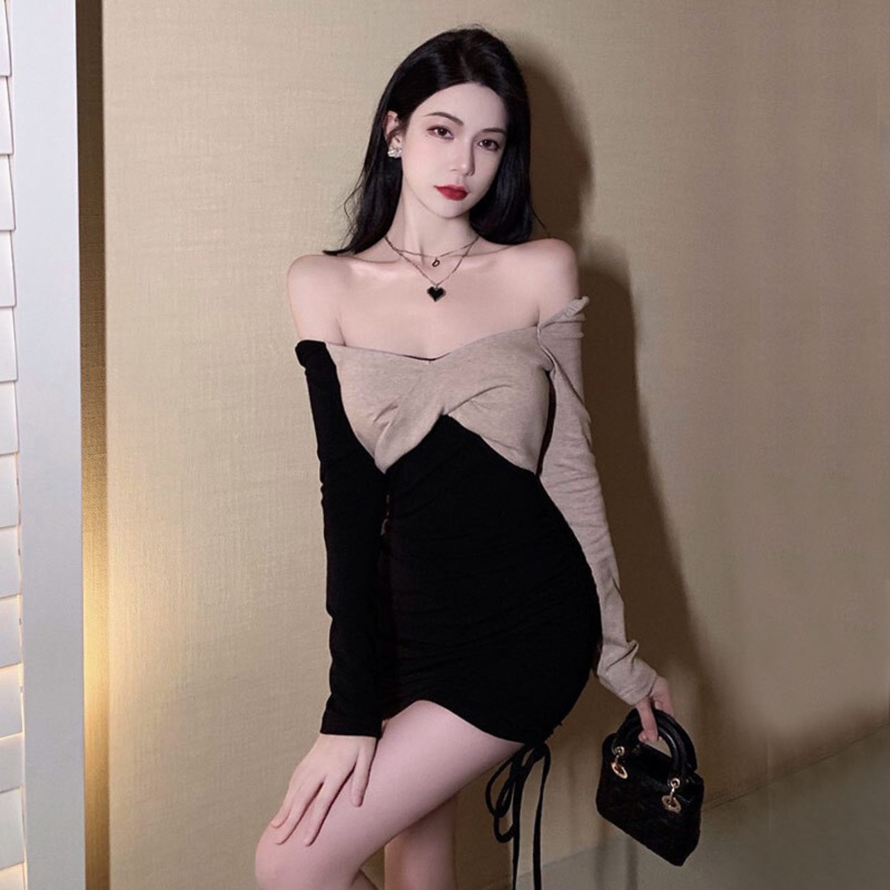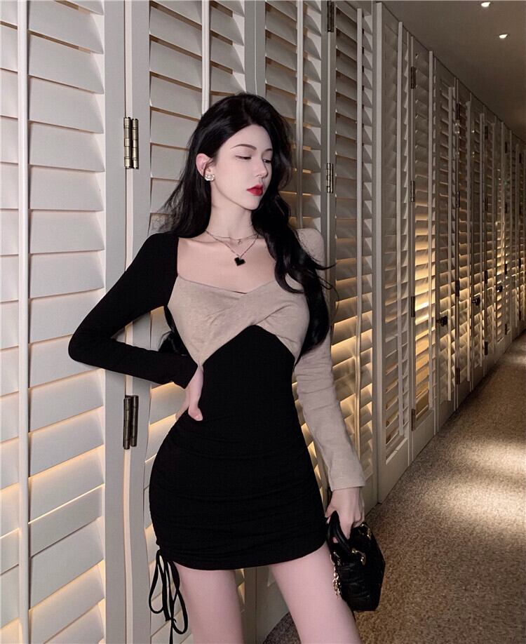 生放送服女性アンカーpogenic純粋な欲望セクシーなスクエアネックニットカラーマッチングインナーボトミングドレス micat58066570207