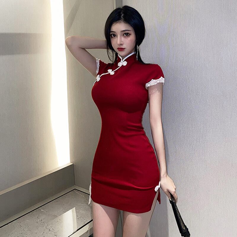 年の前夜のパーティー赤いクリスマスの女性のアンカー服若いセクシーなヒップはチャイナドレスを改善しました micat64507114010