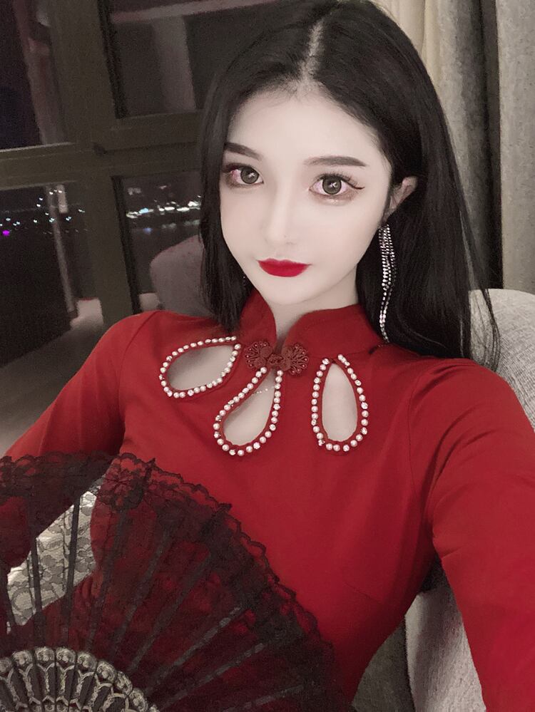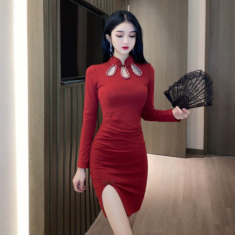 赤いチャイナドレス若いライブ服アンカー年の前夜の女の子セクシーなスプリットヒップドレス micat18313528496