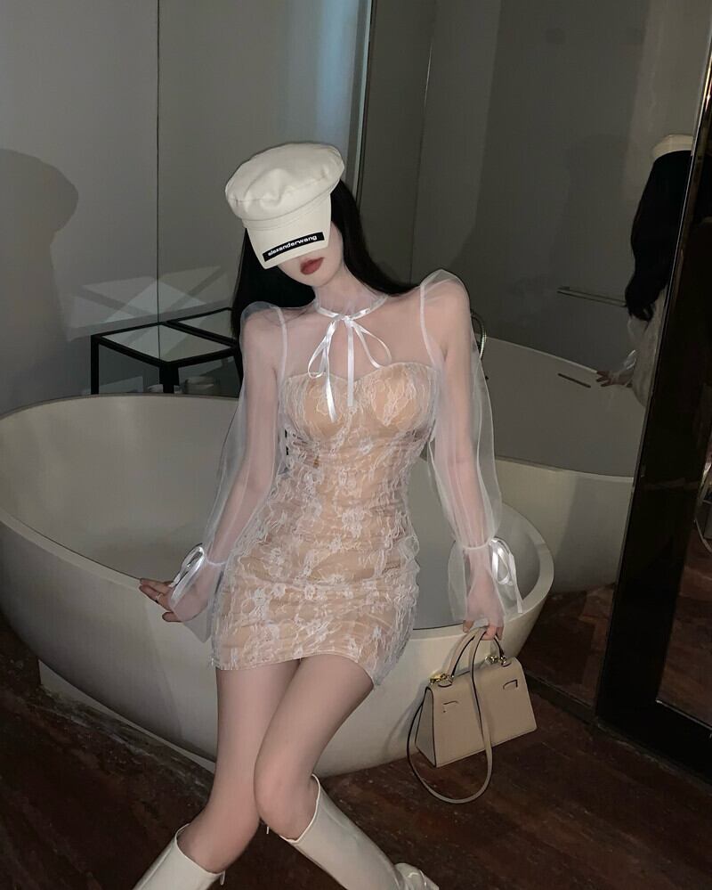 大晦日スモールドレスショート女性スーパーフェアリーメッシュパフスリーブフレンチセクシーレースステッチパッケージヒップドレス micat23735800108