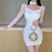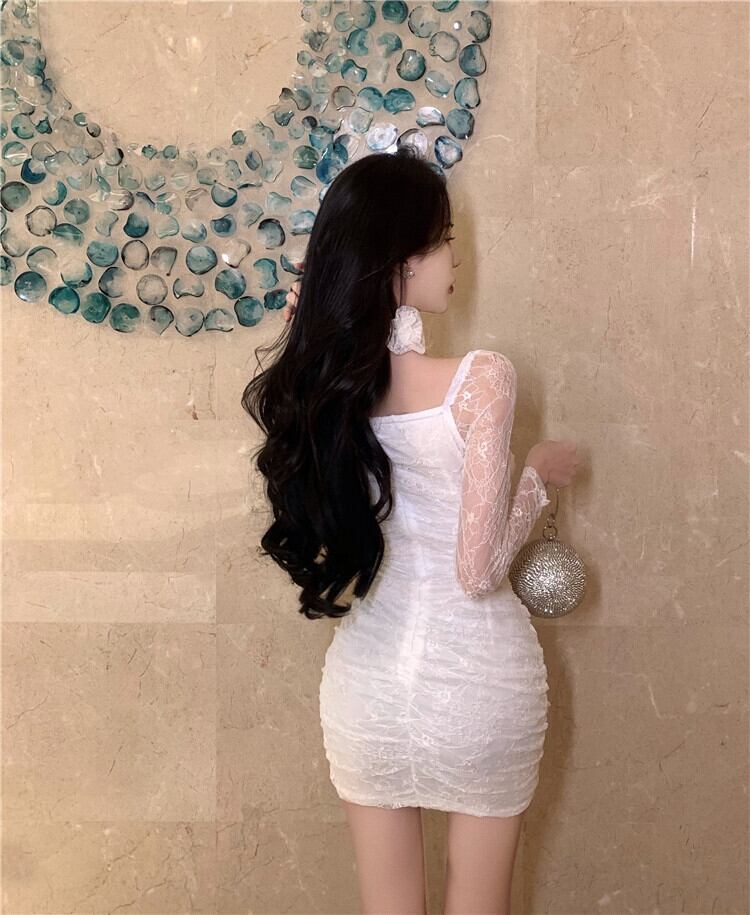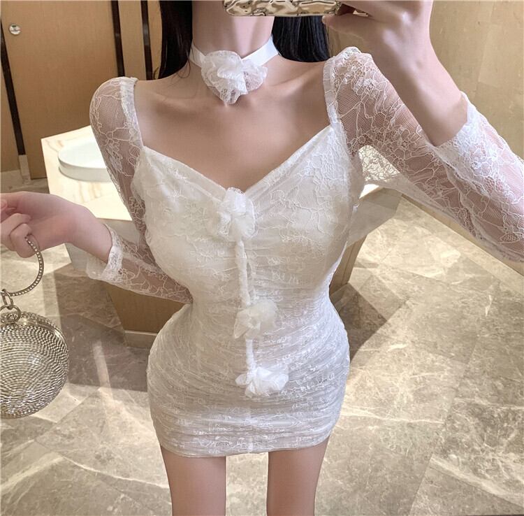 年次総会小さなドレスショートディナーパーティー気質フランスのスーパーフェアリーレースセクシーなVネック長袖ヒップドレス micat52273807228