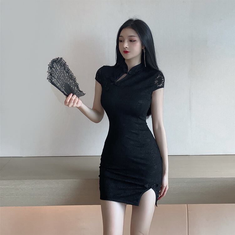 赤いチャイナドレス若い生放送服女性アンカー服セクシーバッグヒップスリットレースドレス micat68457962349