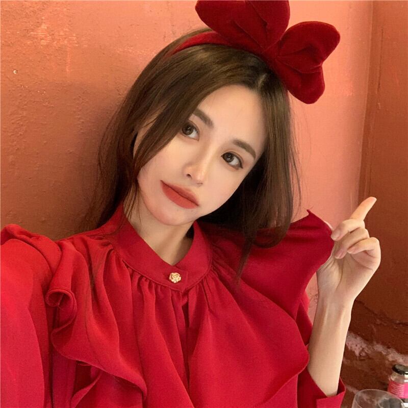 年服レディース2022年春ニューナタルレッドレトロフレンチヘップバーンスタイルスーパーフェアリーフリルシャツ micat32909381343
