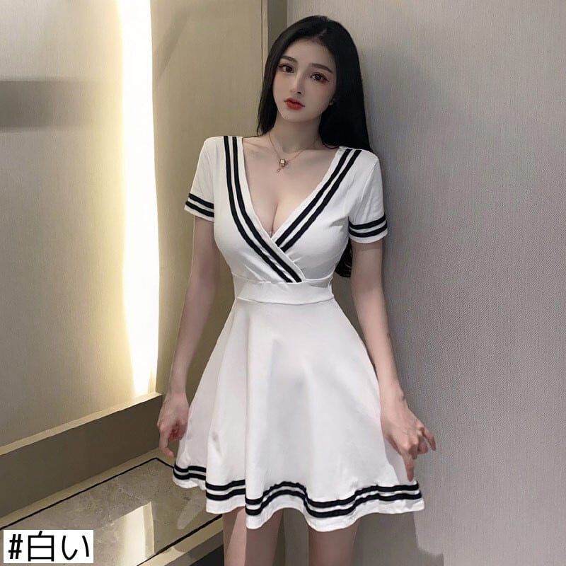 ナイトクラブ婦人服技術者作業服ユニムセクシー作業服ローカットVネックウエストウエスト半袖ワンピース micat16644498110