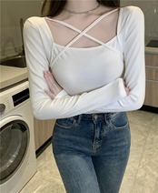 2022年春の新作婦人服デザインセンスニッチピュアデザイアスタイルセクシースクエアカラーボトミングシャツ無地トップTシャツ micat79843377039