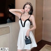 ナイトクラブの女性の作業服、セクシーな作業服、ファッションカラーマッチング、痩身、腹、ラインサスペンダードレス micat74400773367