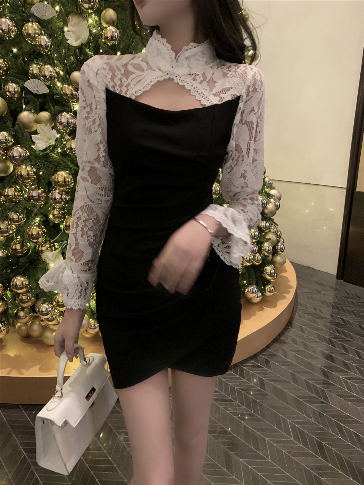 改良されたチャイナドレス2022新しいフレンチスタイルの若いハイエンド気質セクシーなレースステッチパッケージヒップドレス micat30371084942