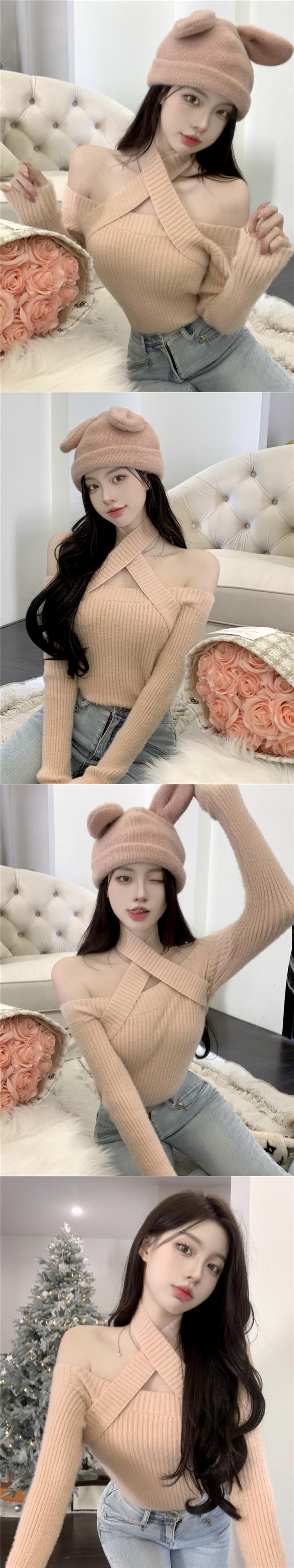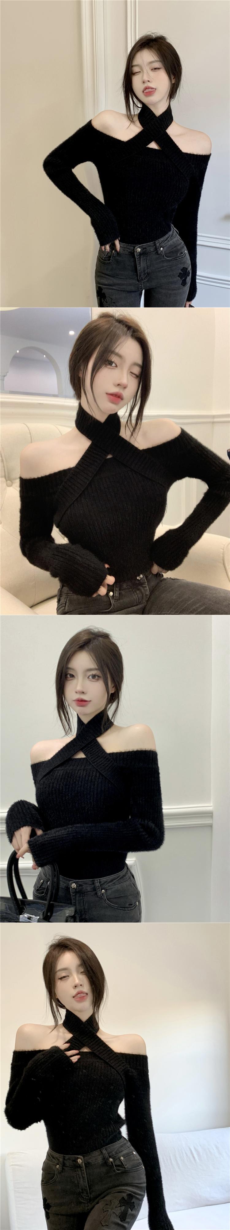 年服女性の2022年赤ライブ放送アンカー服セクシーなワードネックオフショルダーニットセーターホルタートップ micat19103292974