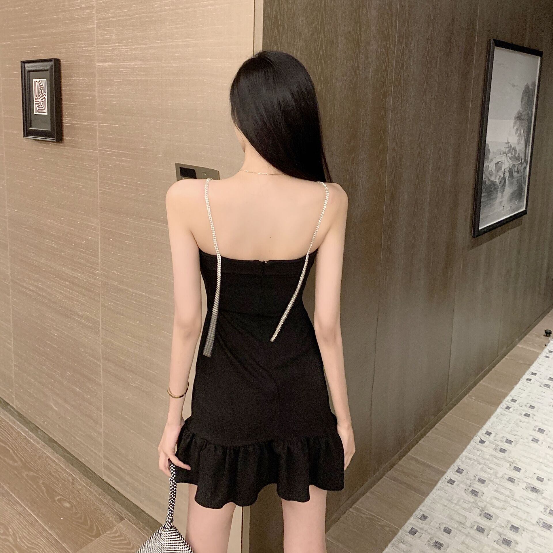 フランスの年次総会黒のリトルドレスショートディナーパーティー気質セクシーなスリムバッグヒップフィッシュテールサスペンダードレス micat22139894434