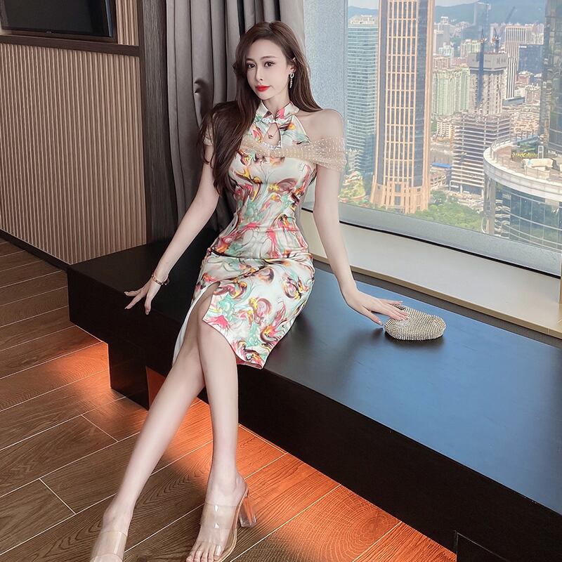 イブニングドレスはチャイナドレス2022を改善しました新しいハイエンドの気質若いセクシーなオフショルダーのミドルドレス micat4845769110