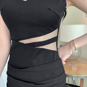 ナイトクラブレディース作業服気質セクシーワークメッシュステッチノースリーブスリムバッグヒップベストドレス micat39908882919