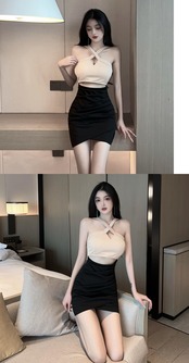 ナイトクラブナイトクラブ女性のセクシーなオーバーオール気質ローカットディープVネッククロスストラップレスホルタードレス micat50984585423