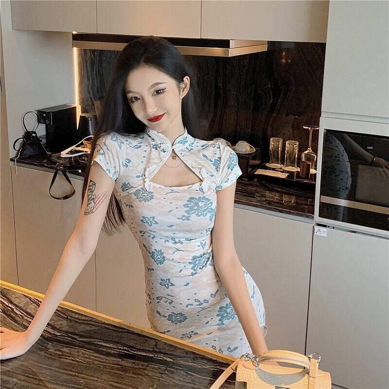 若いレトロな中国風のセクシーなミドル丈のハイスリットドレスのレースチャイナドレス女性の夏の改良版 micat24281030134