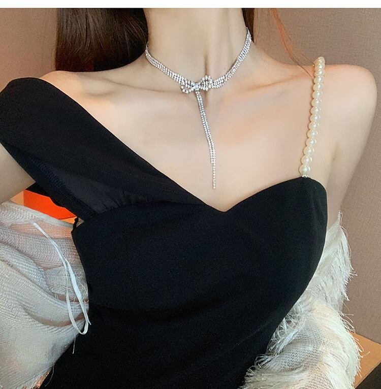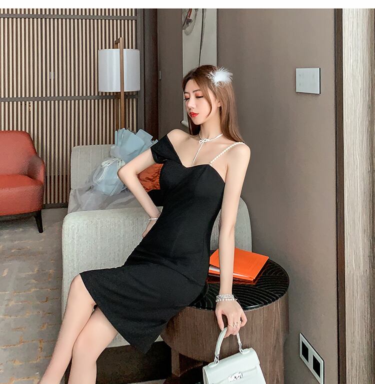 黒のイブニングドレスナイトクラブ女性の夜の宴会レディース気質セクシーなワンショルダーストラップチューブトップドレス micat16322437935