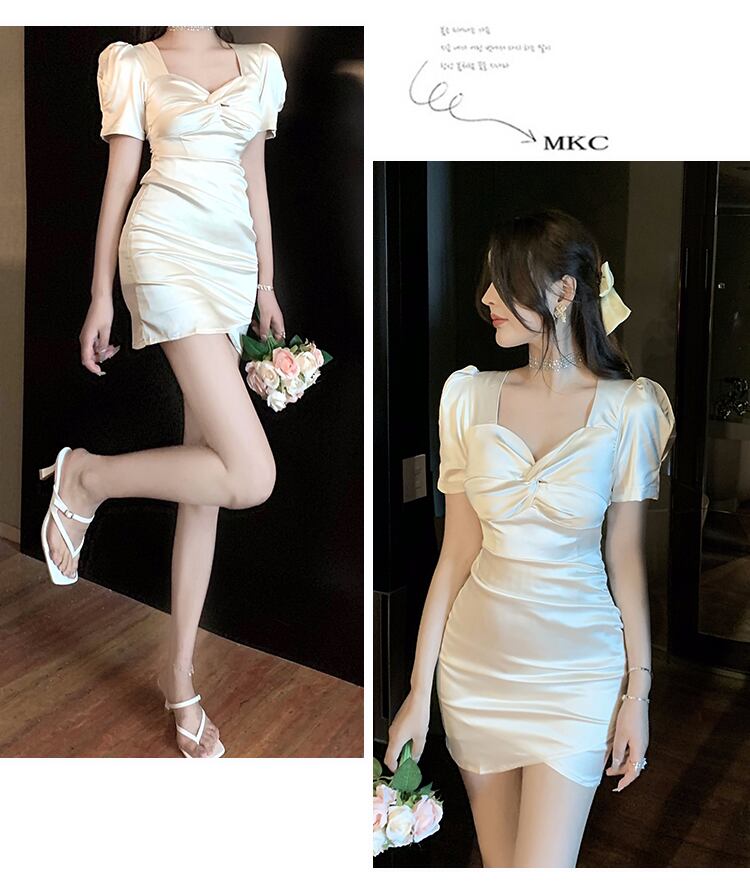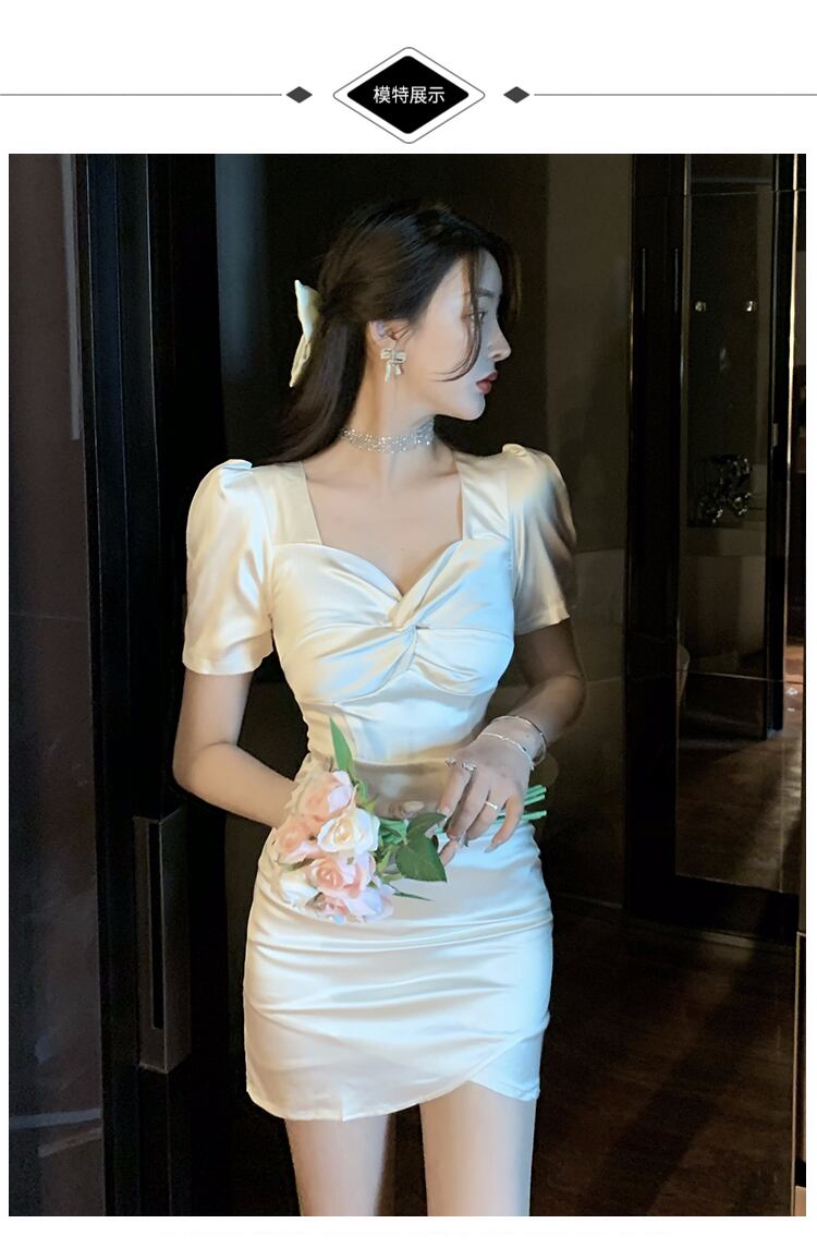 サマードレス2021新しいレディース気質フレンチパフスリーブセクシーなVネックサテンショートヒップドレス micat80150844660