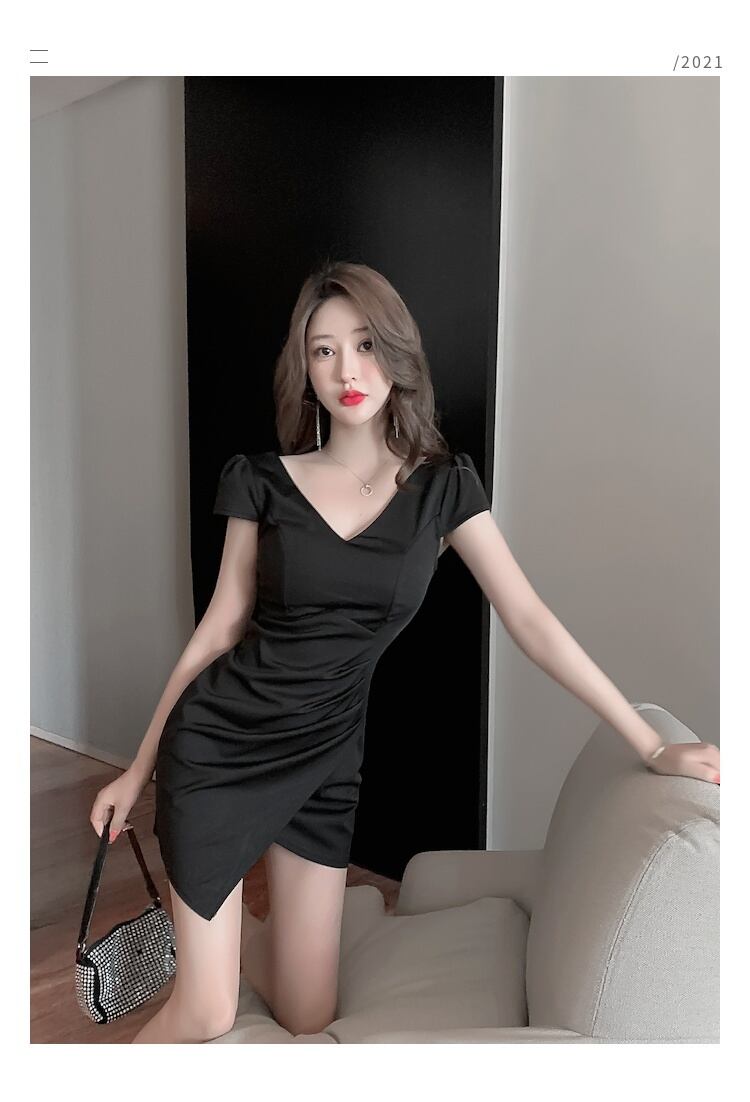 ナイトクラブの女性の作業服セクシーな作業服気質Vネックスリムでスリムな不規則なヒップドレス micat80381979139
