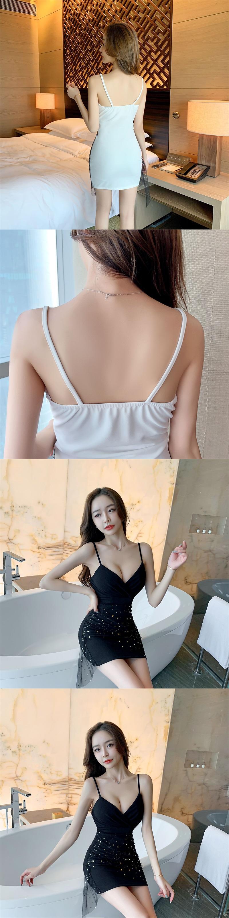 ナイトクラブドレスレディースナイトワーク服作業服メッシュステッチセクシーなローカットVネックサスペンダースカート micat53621645700