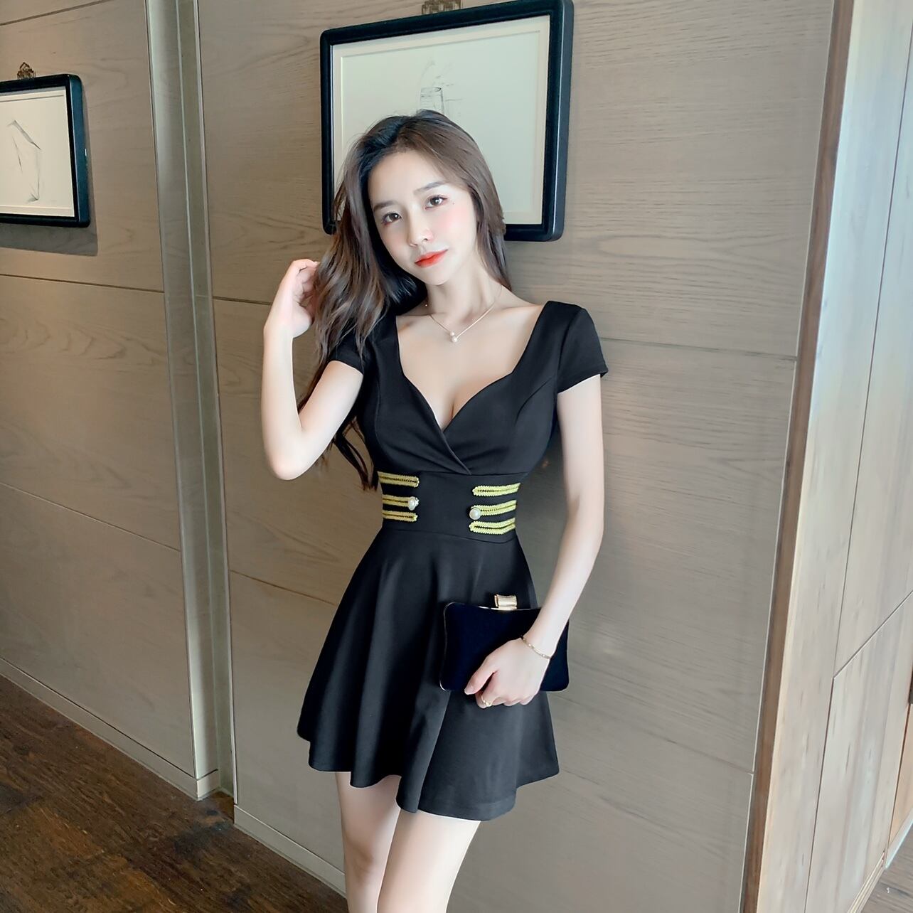 ナイトクラブの女性のセクシーなオーバーオールユニム作業服ローカットディープVネックスリミングカバー腹半袖ドレス micat46038190084