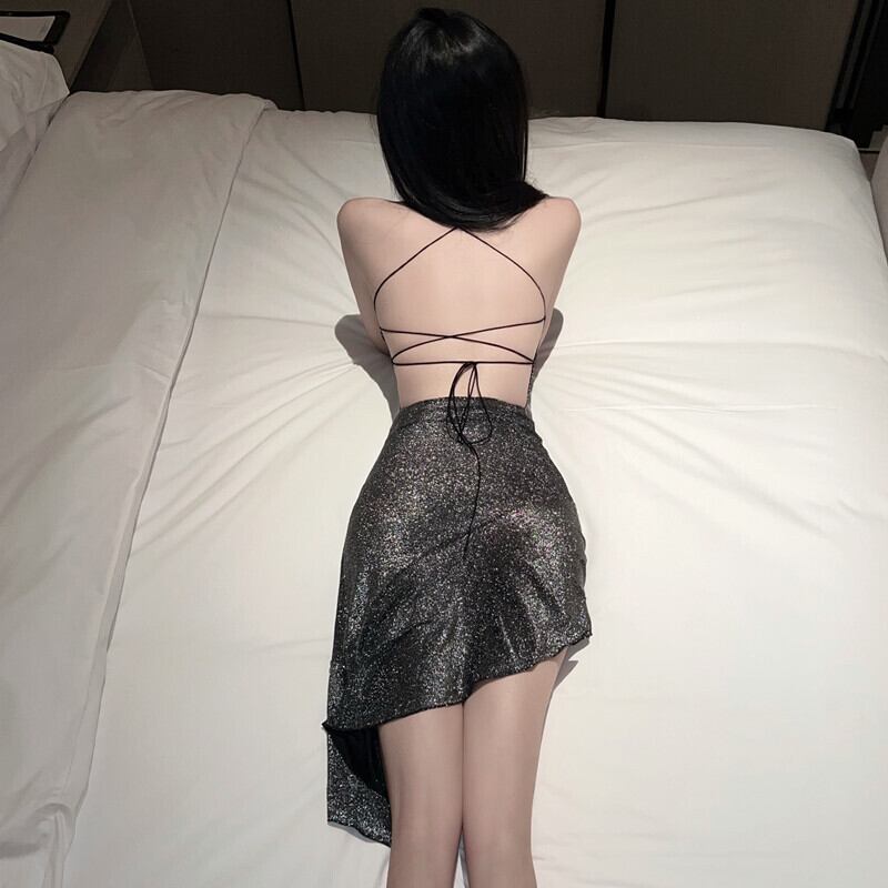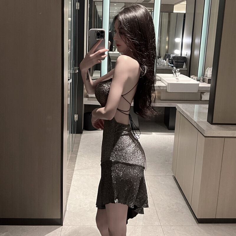 ナイトクラブの女性の宴会の気質の小さなドレス光沢のあるシルクセクシーな背中の開いたストラップフィッシュテールサスペンダードレス micat29117587102