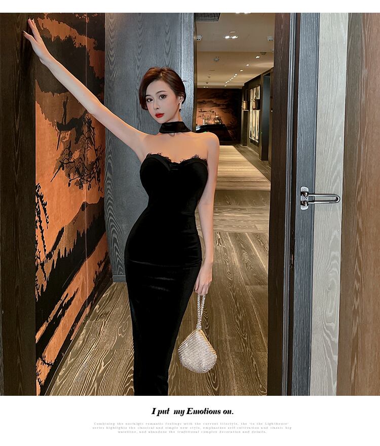 毎年恒例のパーティーイブニングドレスロングスカート女性のナイトショップ宴会気質セクシーなゴールドベルベットロングチューブトップホルタードレス micat34904761705