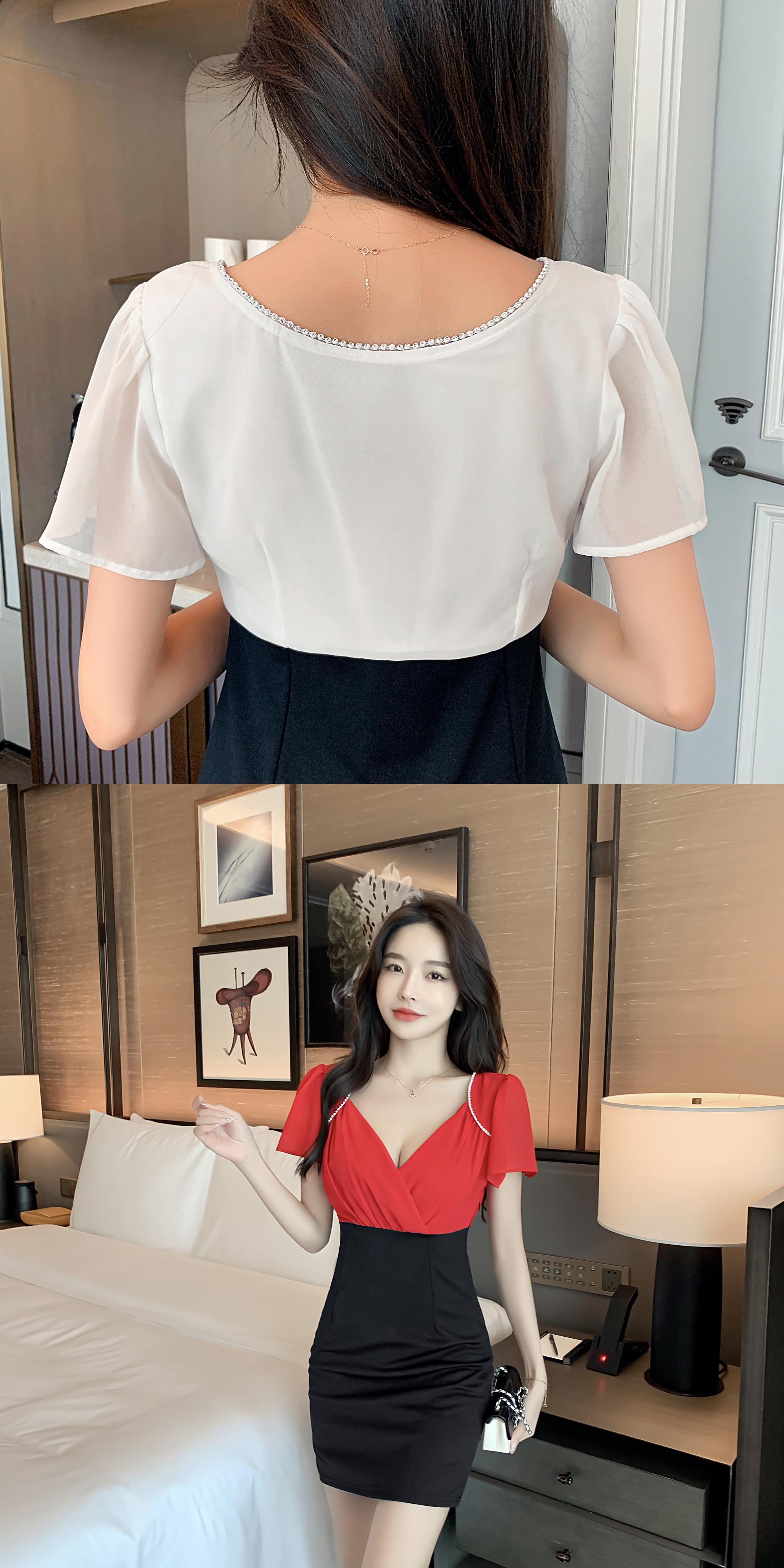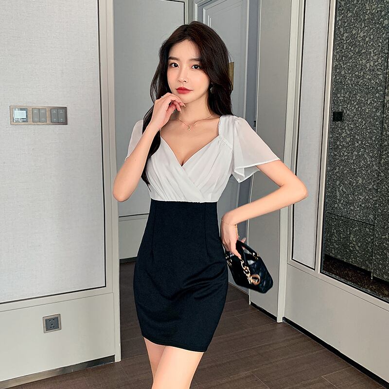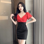 ナイトクラブレディース作業服気質セクシー作業服ローカットディープVネックステッチフェイクツーピースワンピース micat44926868977
