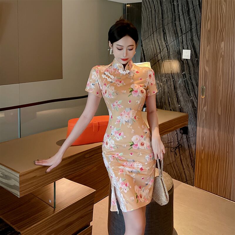 チャイナドレス若いハイエンド気質2022年中華民国若いおばあちゃんの服レトロな印刷セクシーなドレス micat62867516306