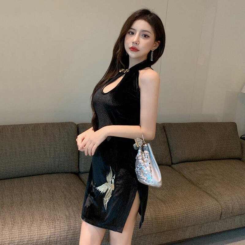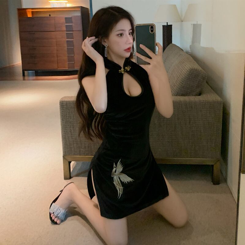 ライブ服女性アンカーポジェニックハイエンドナイトクラブセクシーなオフショルダー中空ゴールドベルベット改良チャイナドレス micat31024294461
