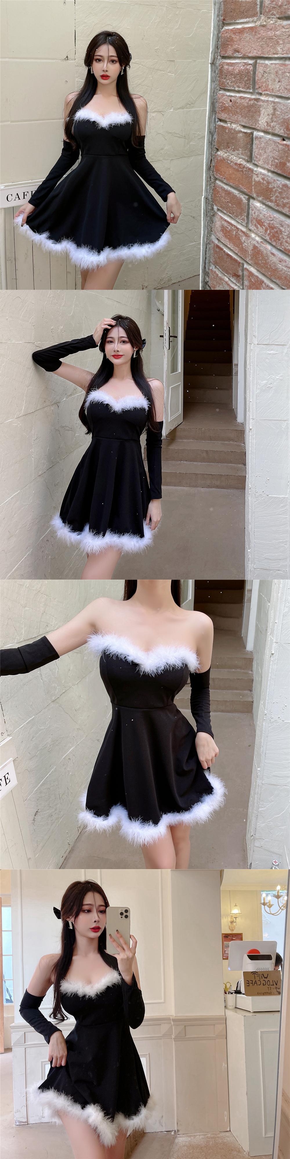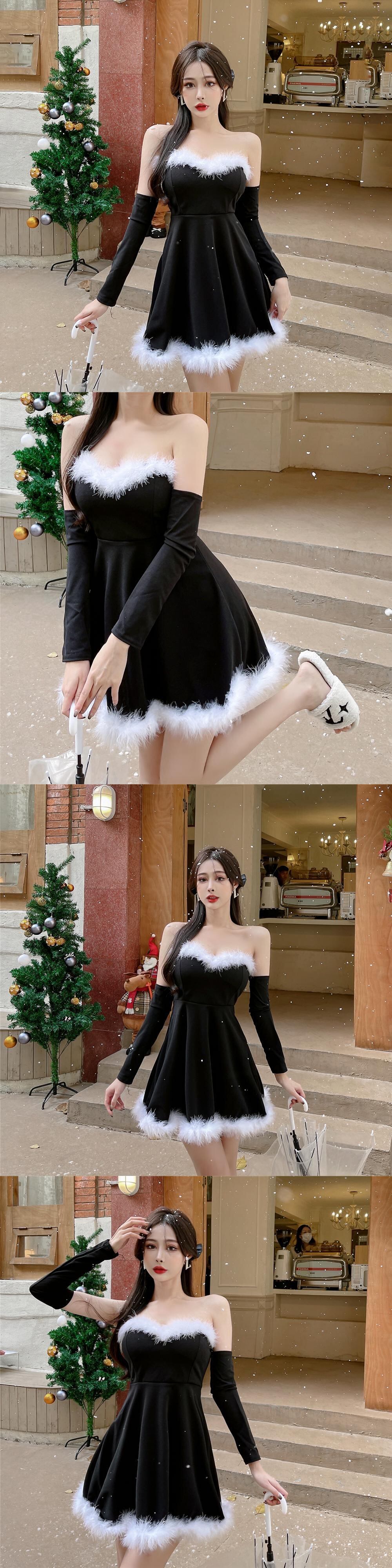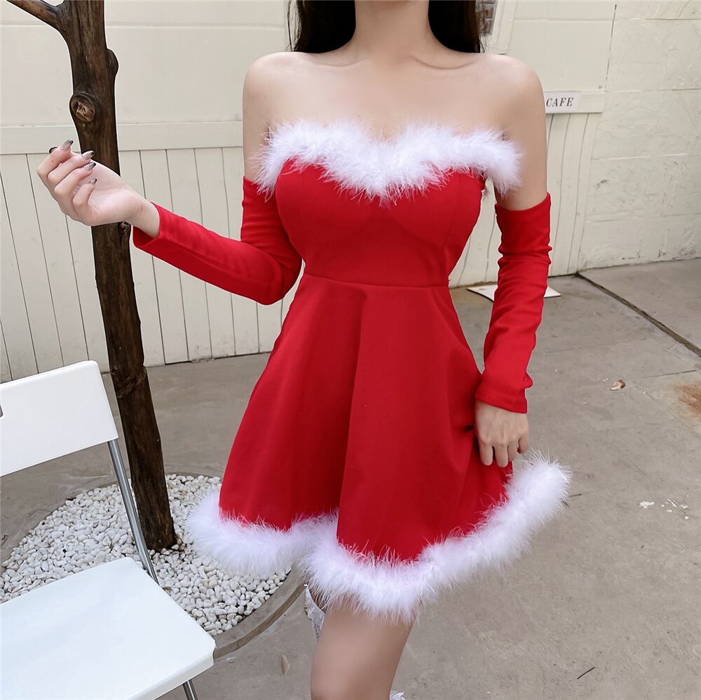 クリスマスの雰囲気スカート服アンカーナイトショップ作業服女性のセクシーな長袖チューブトップドレス micat16921504734