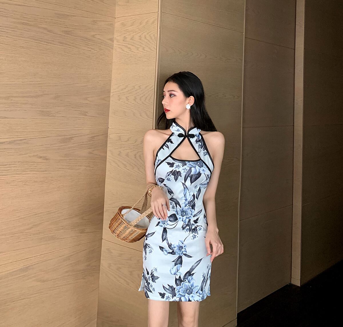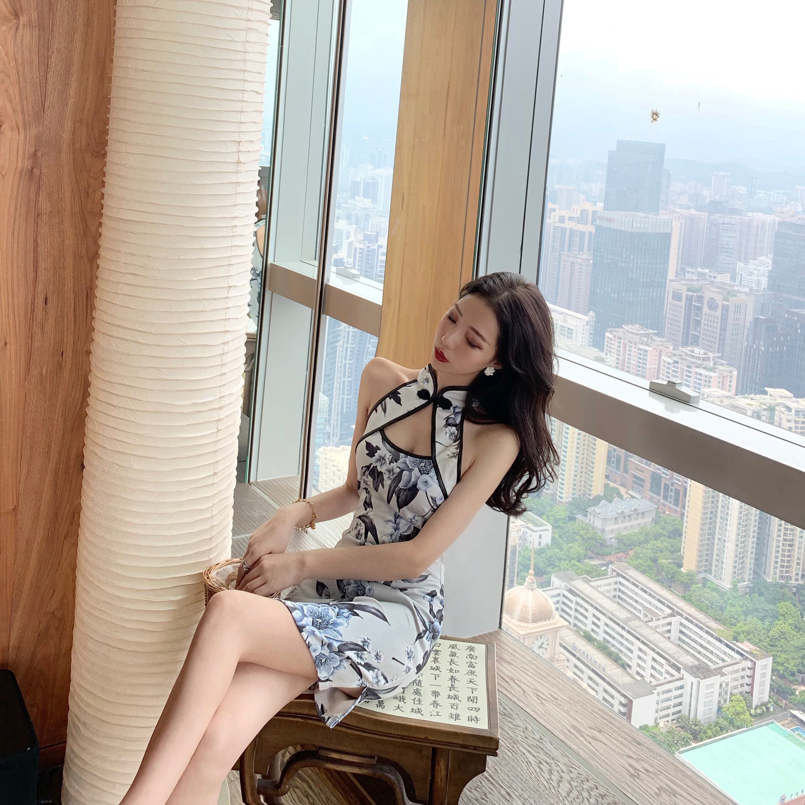 アンカー服チャイナドレス夏の若い改良版セクシーな中空ショートストラップレスホルタードレス micat41412437946