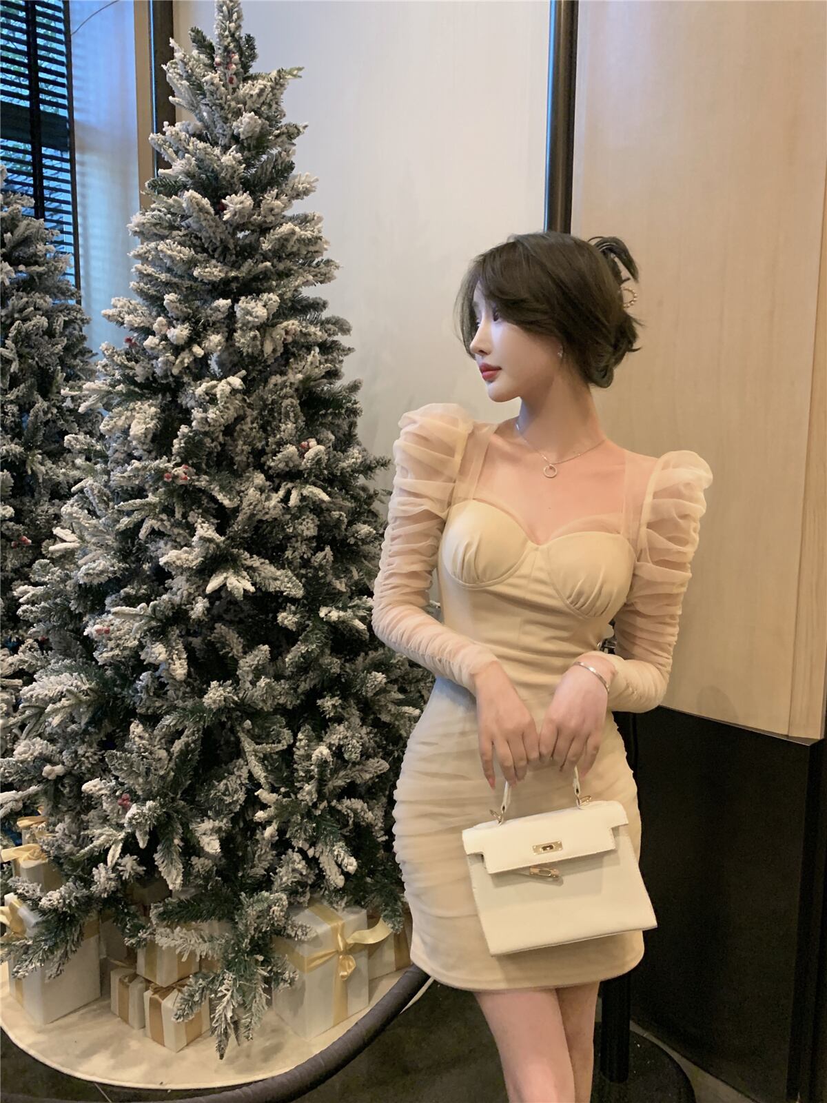 イヤーズイブスモールドレスショートナイトショップ婦人服スーパーフェアリーメッシュフレンチセクシー長袖ヒップチューブトップドレス micat70849658468