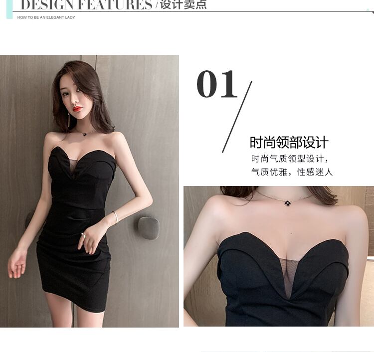 ナイトクラブの女性の作業服セクシーな作業服メッシュステッチローカットディープVネックバッグヒップチューブトップドレス micat86916003859