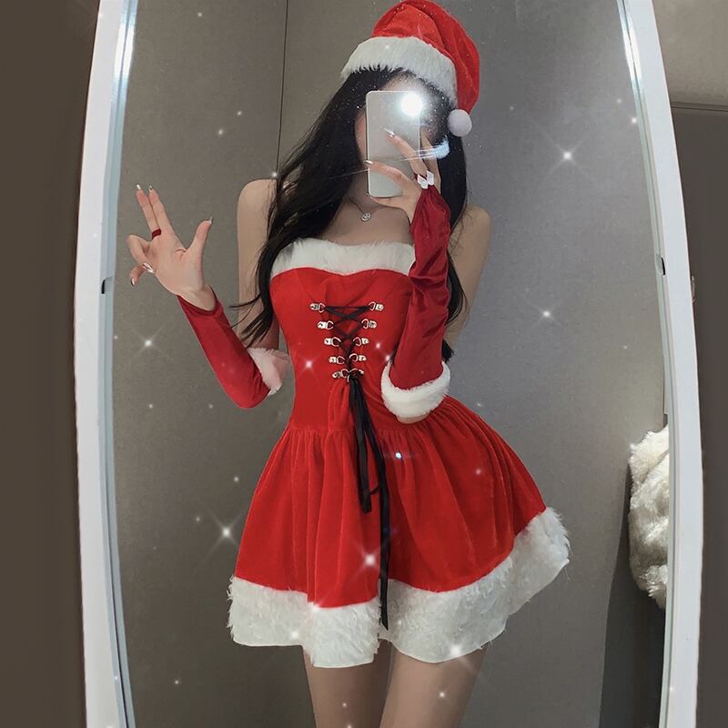 クリスマスのテーマ婦人服セット手袋+頭飾り帽子+小さなドレスセクシーなチューブトップドレス micat86275384410