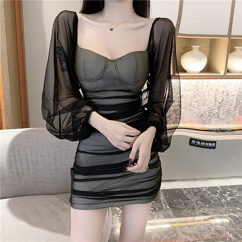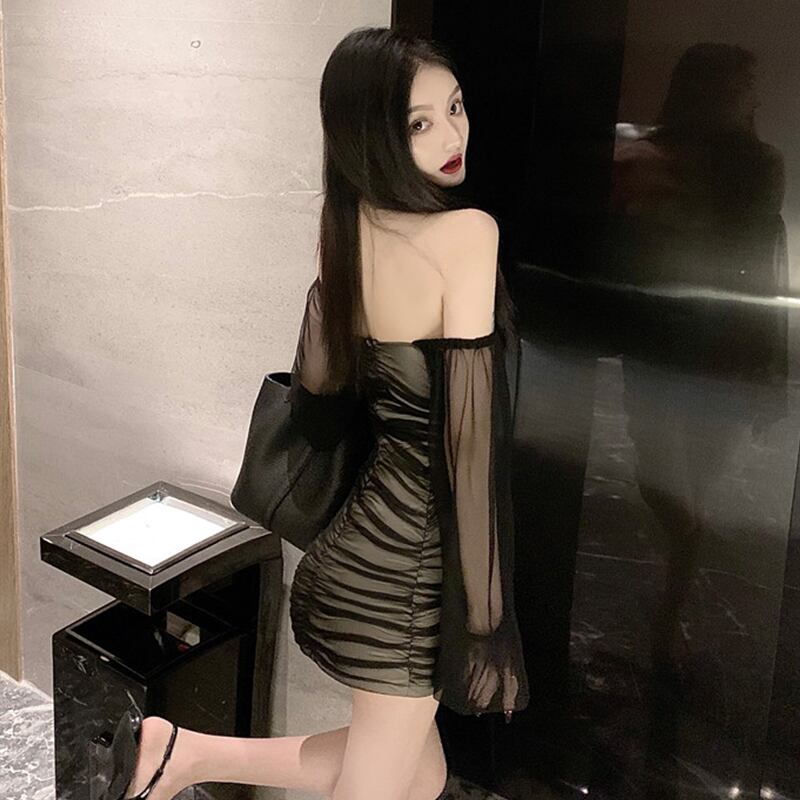 ライブ服女性アンカーポジェニックハイエンドナイトショップフレンチスーパーフェアリーメッシュランタンスリーブセクシーチューブトップドレス micat46422556653