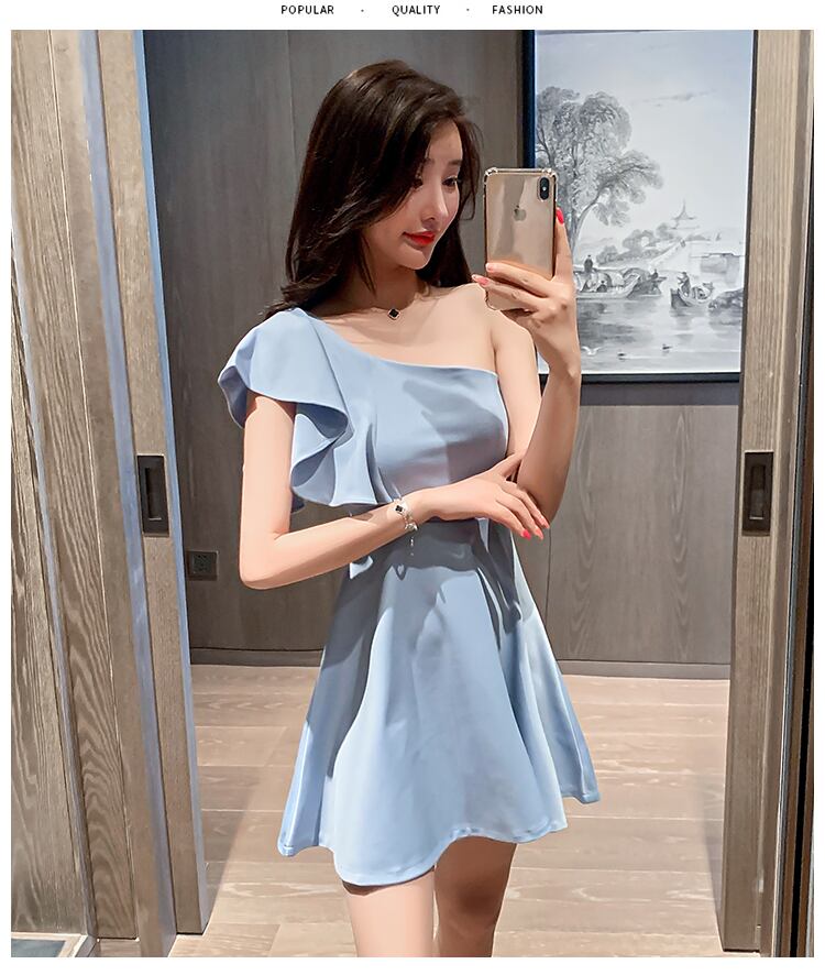 ナイトクラブの女性の夜のセクシーな傾斜した襟傾斜した襟ワンショルダーオフショルダーウエストスリミングカバー腹ふくらんでいるドレス micat56161638292