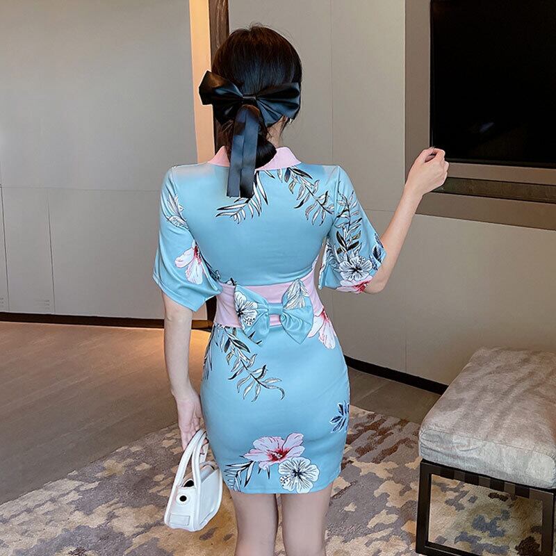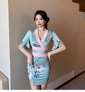 ナイトクラブ女性生放送アンカー服作業服気質セクシーVネックウエストスリミング着物ドレス micat86797852061