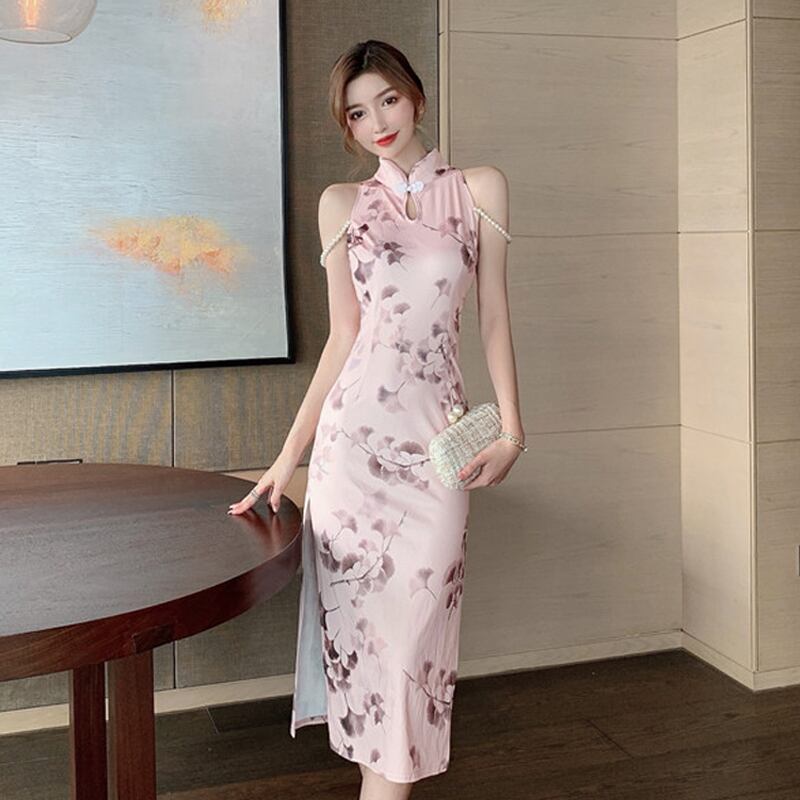 イブニングドレス若い気質エレガントな中国風セクシーなスリットミドル丈チャイナドレス改良版ドレス micat72721655118