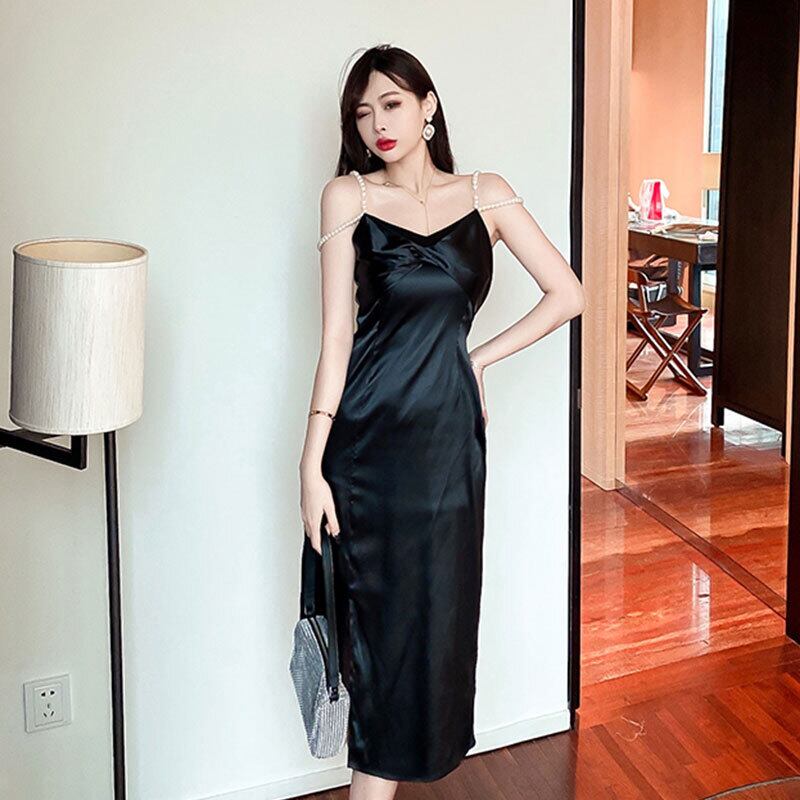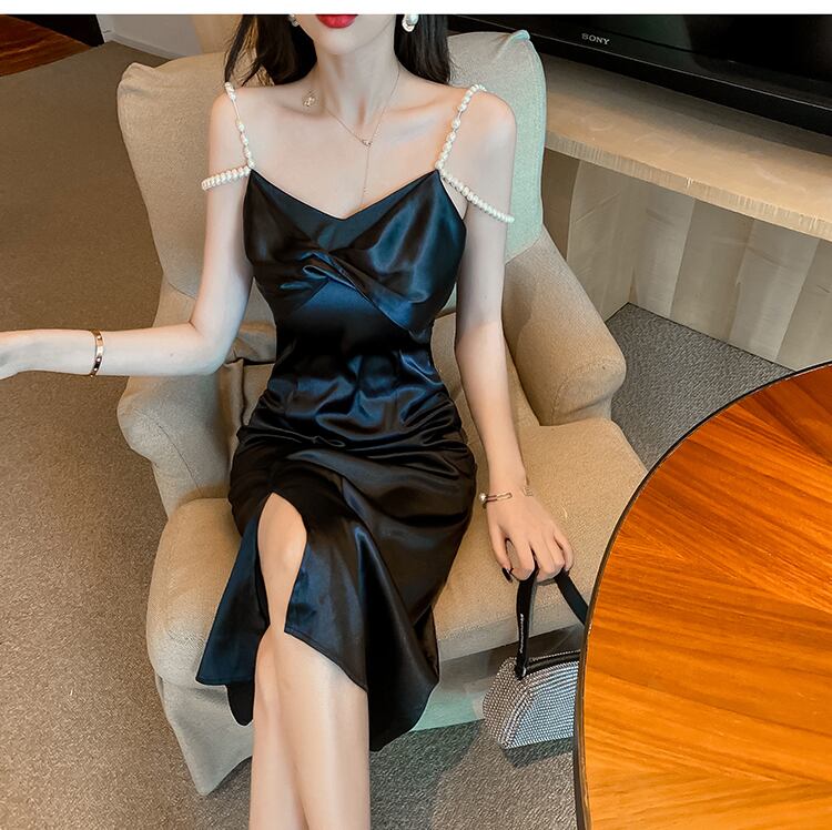 2021年の新しい女性のイブニングドレス宴会気質ナイトクラブセクシーパールミドルレングスサテンサスペンダードレス micat20106476755