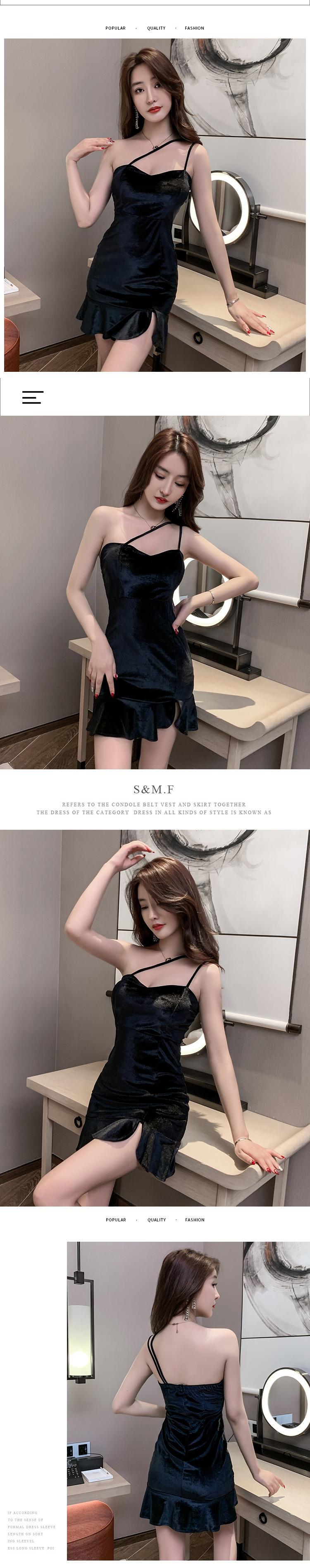 ナイトクラブの女性の秋と冬のショートドレス気質セクシーなゴールドベルベットスリムバッグヒップフィッシュテールサスペンダードレス micat14099991034