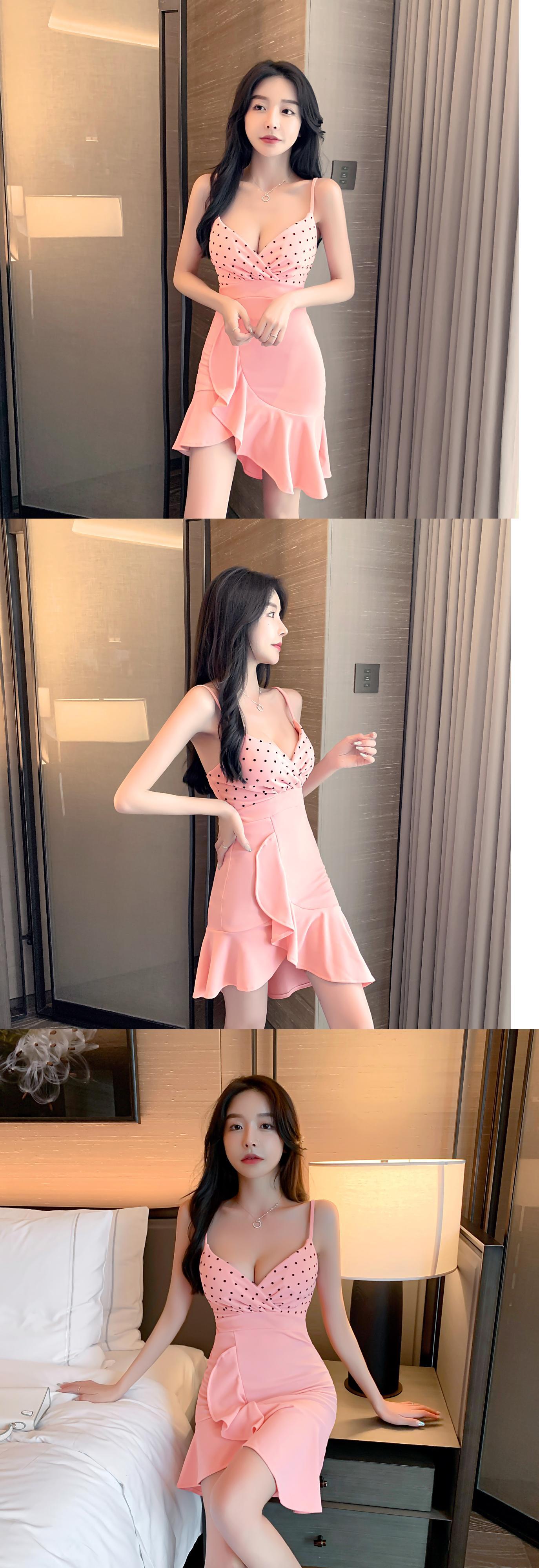 ナイトクラブナイトクラブ女性の作業服セクシーなローカットディープVネック水玉ステッチフィッシュテールサスペンダードレス micat54718339904