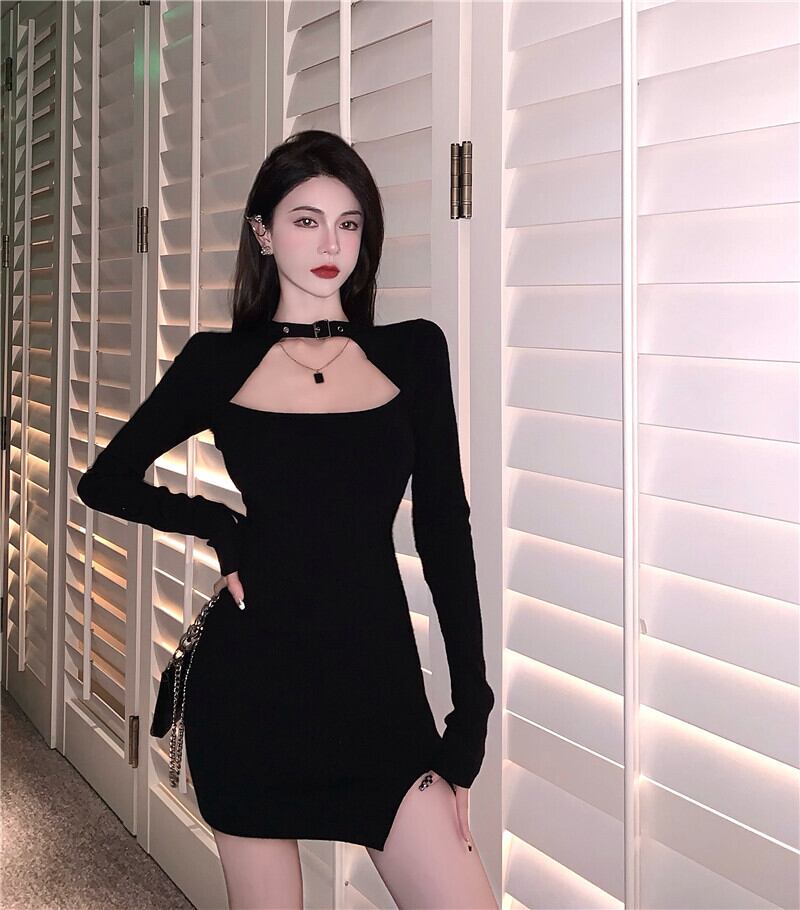 2021年秋新しい女性のリトルブラックドレスショートセクシーな中空タイトバッグヒップスリットホルタードレス micat12830068027