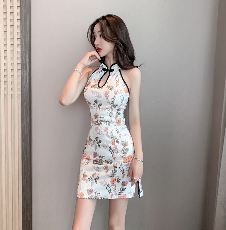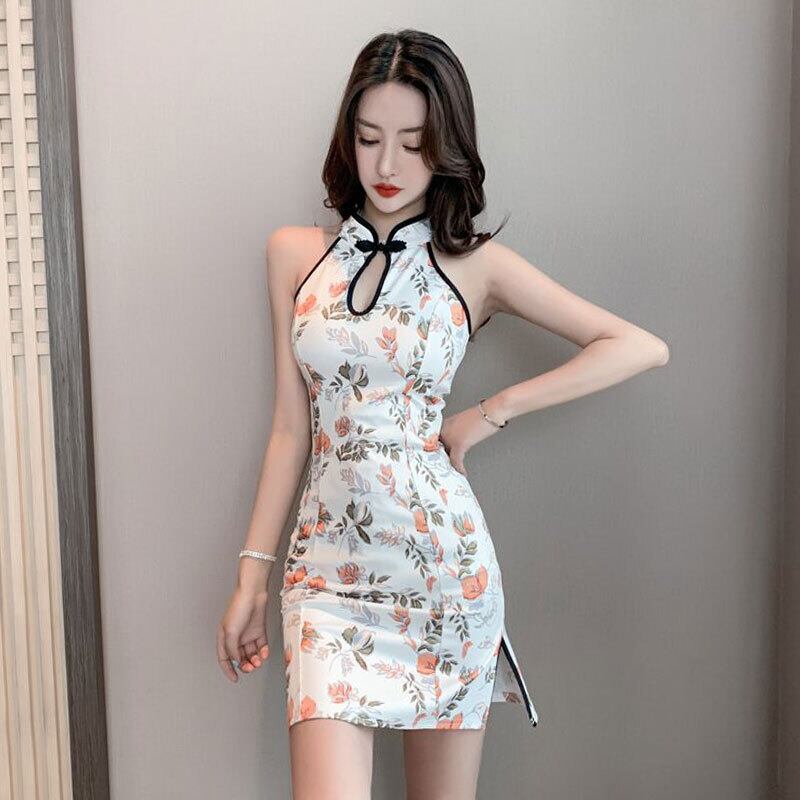 ナイトフットバス技術者作業服レトロな中国風セクシーな背中の開いたスプリットショートチャイナドレス修正ドレス micat10019095839