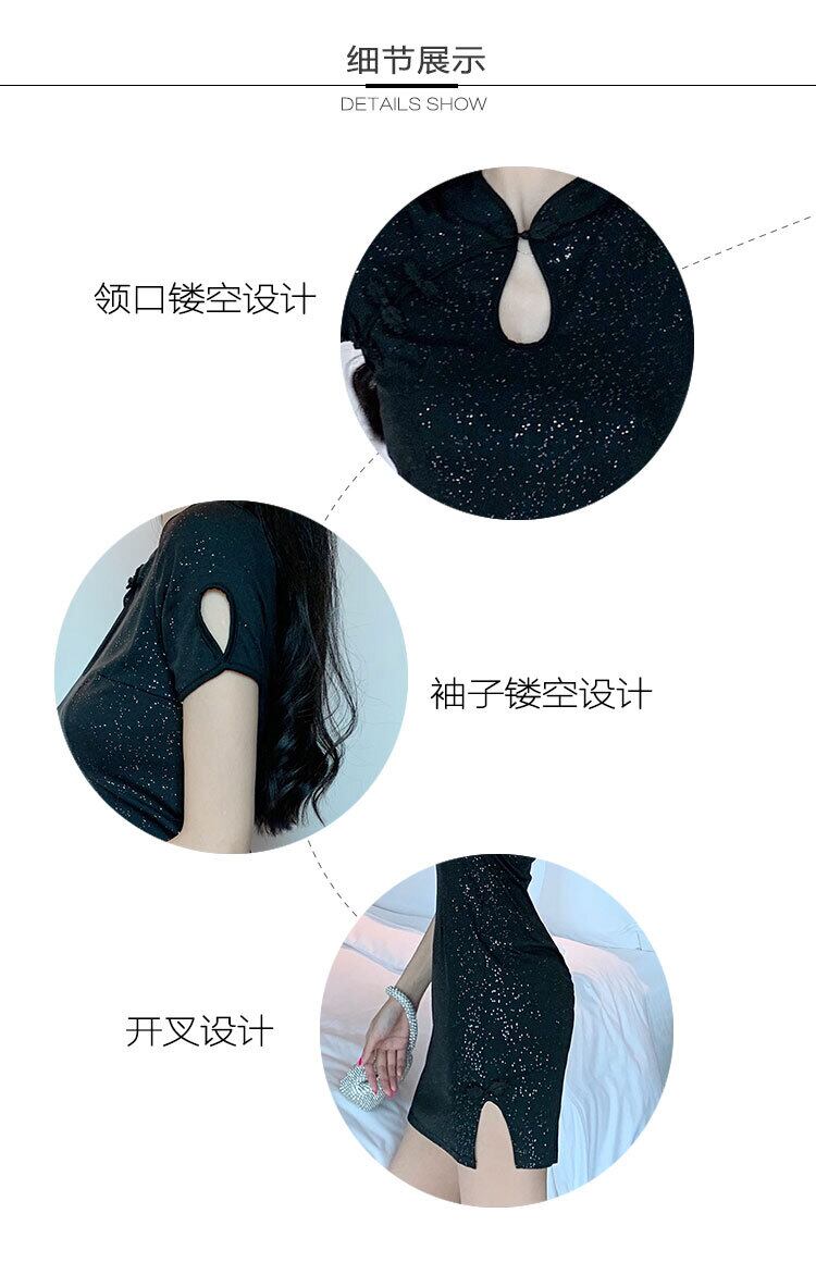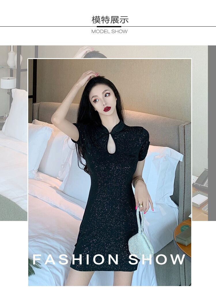 黒の改良されたチャイナドレス若い黒の光沢のあるブロンズセクシーなショートヒップドレス micat21850274789