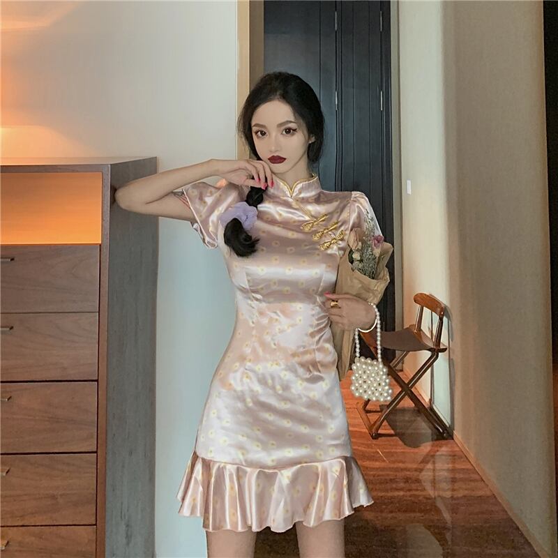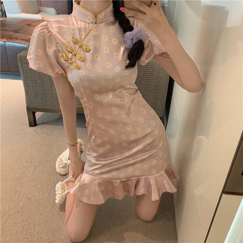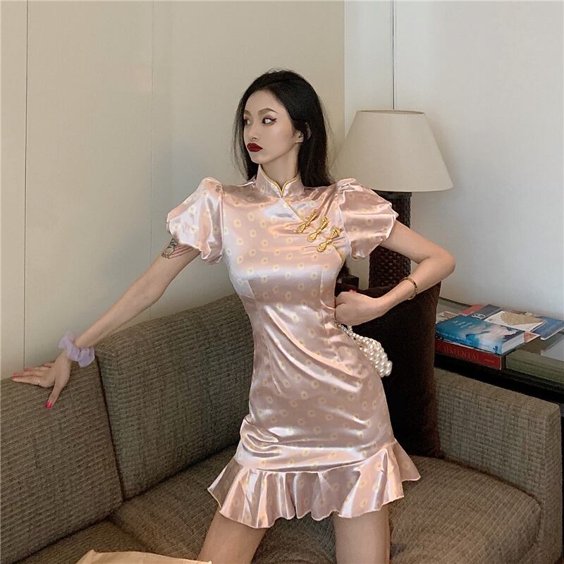 フランスの改良されたチャイナドレス2022新しいハイエンド気質の若いパフスリーブセクシーなフィッシュテールドレス micat233188024