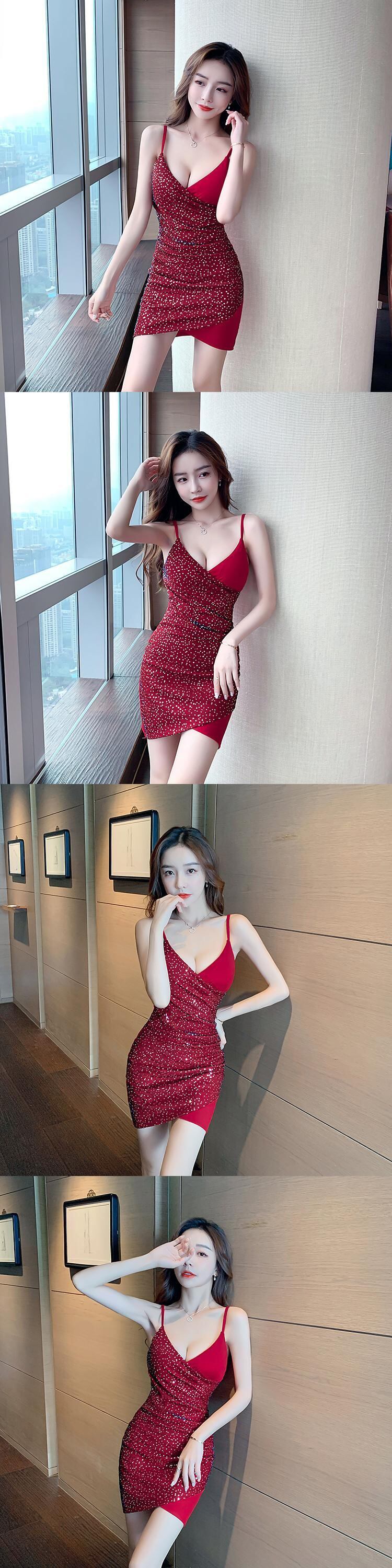 ナイトクラブレディースナイトワーク服ツーリングストアセクシーなローカットディープVネックメッシュステッチサスペンダードレス micat82890668062