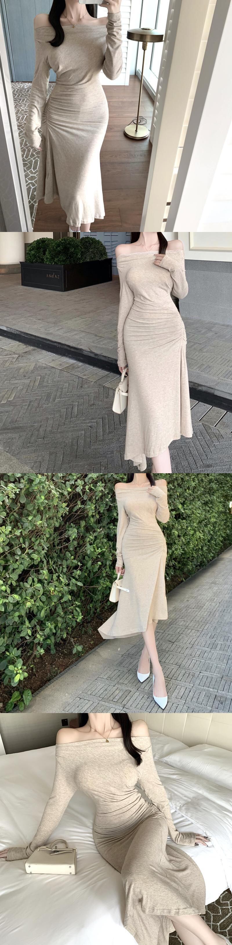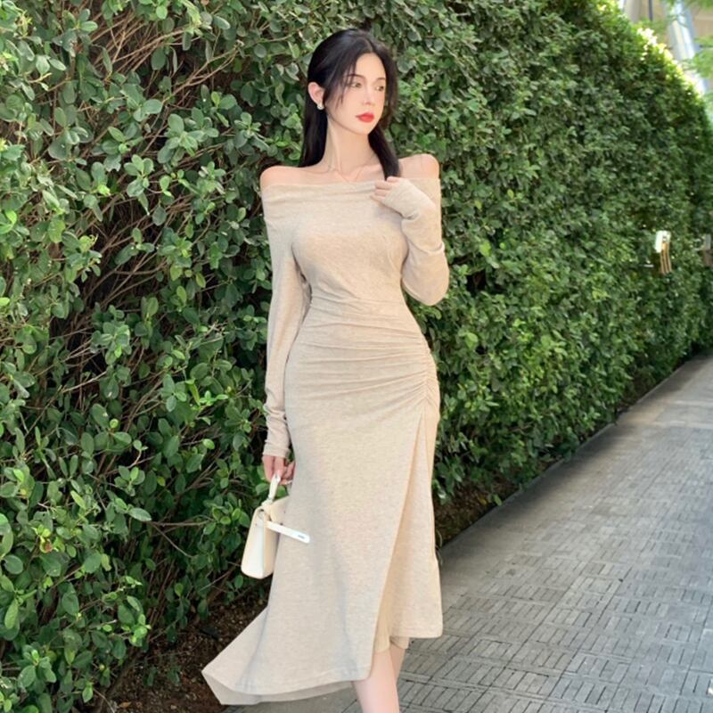 気質の女神ファン2021新しいセクシーなワンショルダースリムフィットと薄いミドル丈のオフショルダーボトミングドレス micat18898909152