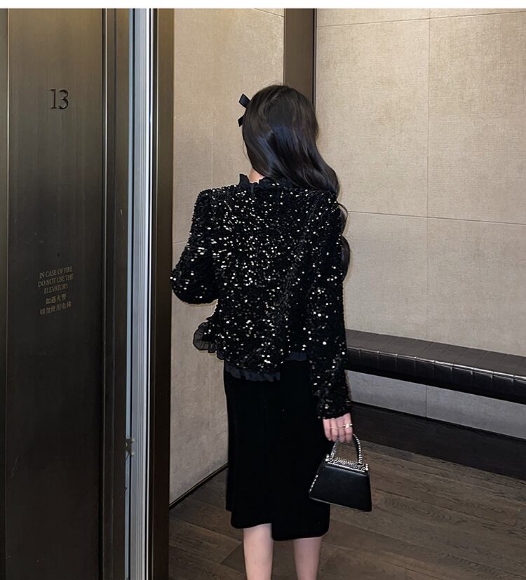 フランスのハイエンドトップ女性の秋と冬の気質シックなハイエンド重工業スパークリングスパンコールオールマッチショートスモールコート micat95411192226
