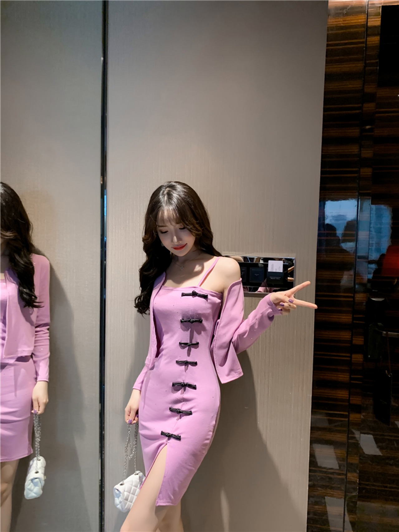 チャイナドレス秋の若いスーツカーディガンスモールコート+セクシーヒップサスペンダードレスツーピースセット micat2411143197