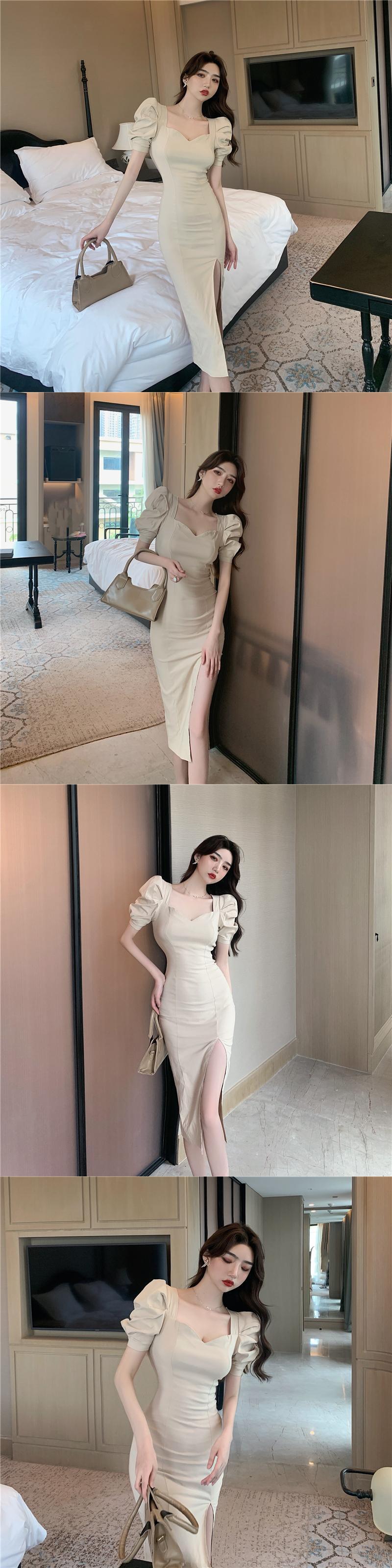 フランスのニッチな膝上ロングスカート、ハイエンドのパフスリーブスカート、気質、スリムフィット、スリムでハイスリット、セクシーなドレス micat61944145102