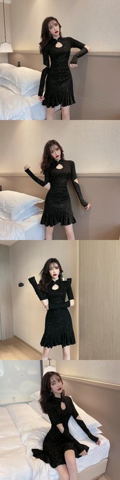 ストリーマーチャイナドレス2021新しい秋と冬の若い中国のスタイルは全国的なトレンドのセクシーなショートフィッシュテールドレスを改善しました micat12143295591